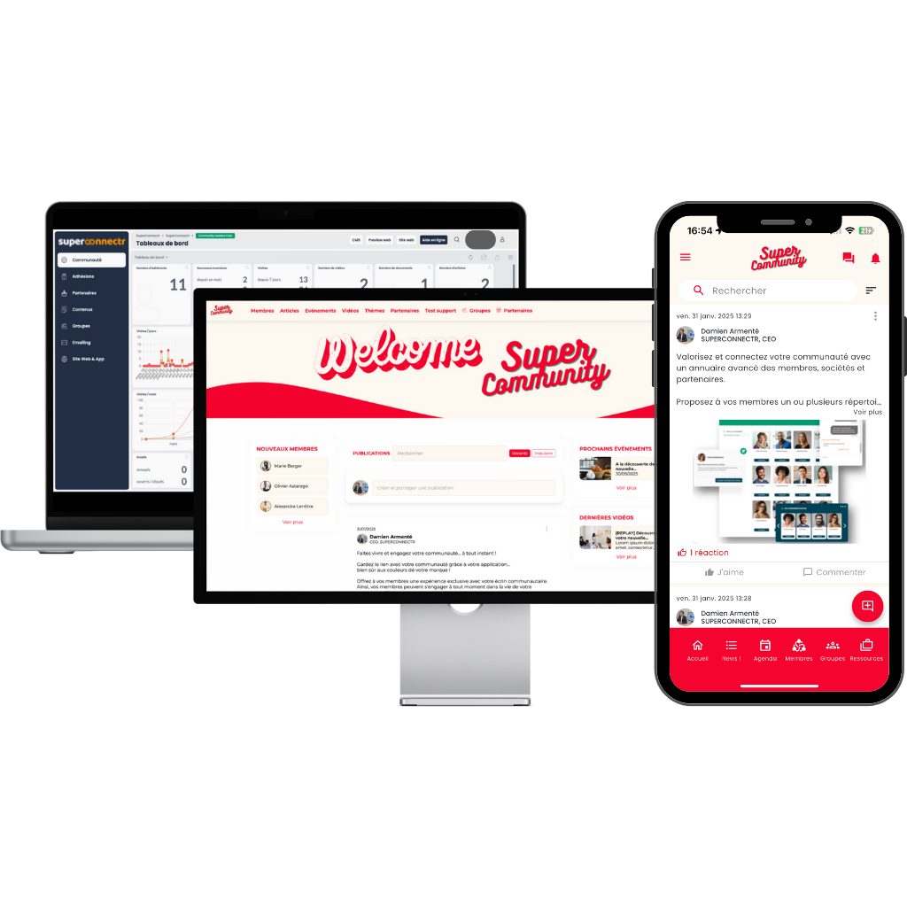 Offrez à vos adhérents un espace communautaire moderne pour échanger, collaborer et s'engager durablement dans la vie de votre réseau.